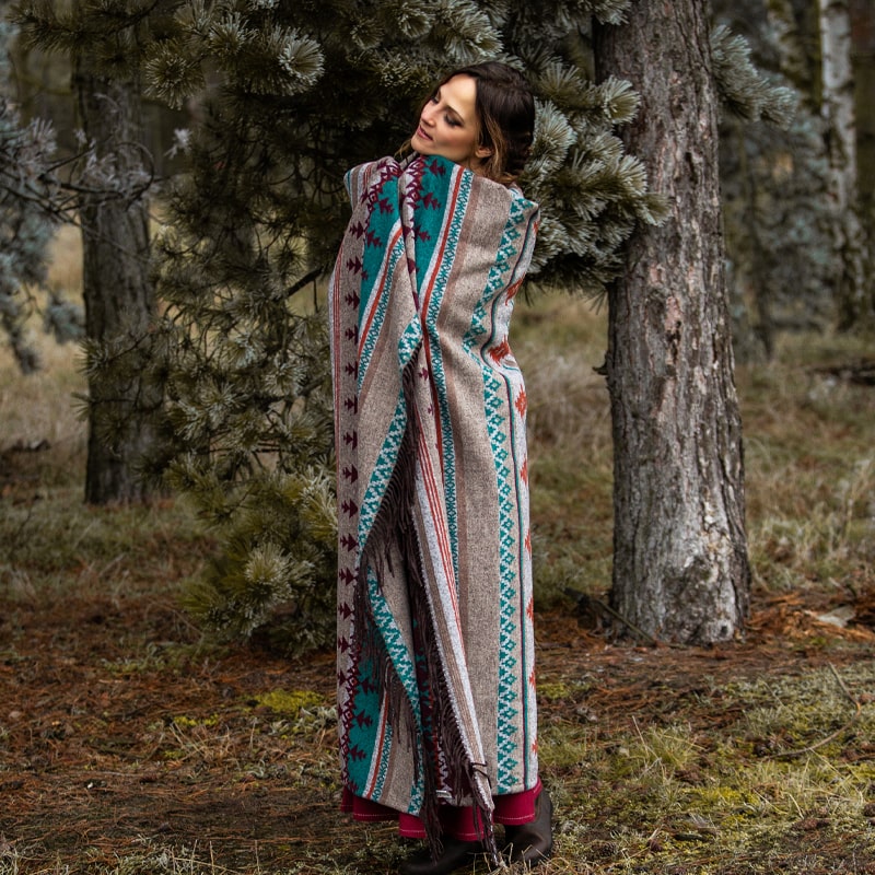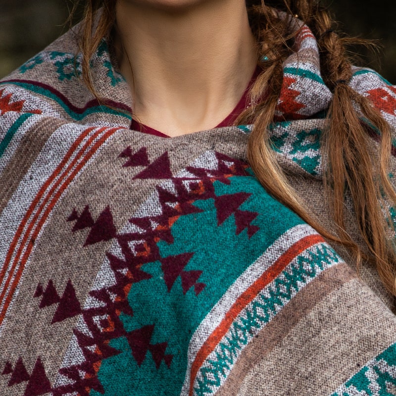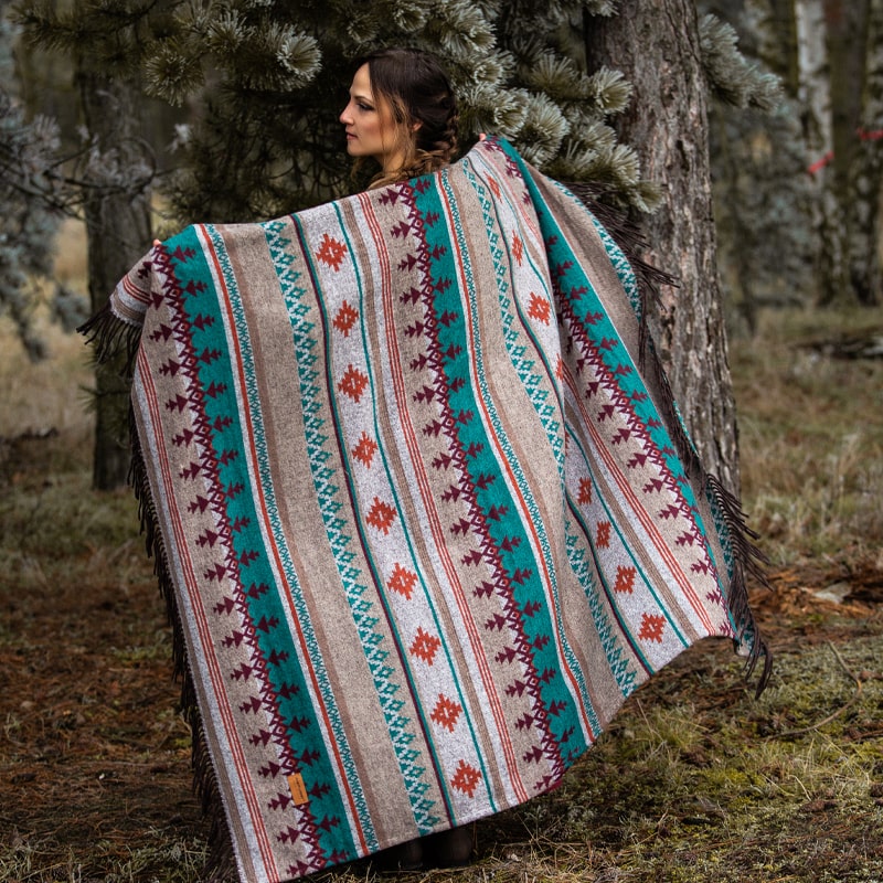 Designed for those who appreciate heritage and craftsmanship, this stunning lightweight blanket showcases a rich Southwestern motif with earthy, muted tones of turquoise, brown, rust, and beige. Woven with care from eco-friendly recycled materials, it offers both sustainability and softness.Fringed edges add a traditional decorative touch, enhancing its rustic appeal. Whether draped over a couch, bed, or chair, it brings a warm, ethnic charm to any space. Perfect for cozying up on chilly evenings, reading by the fire, or adding a touch of timeless elegance to your home.