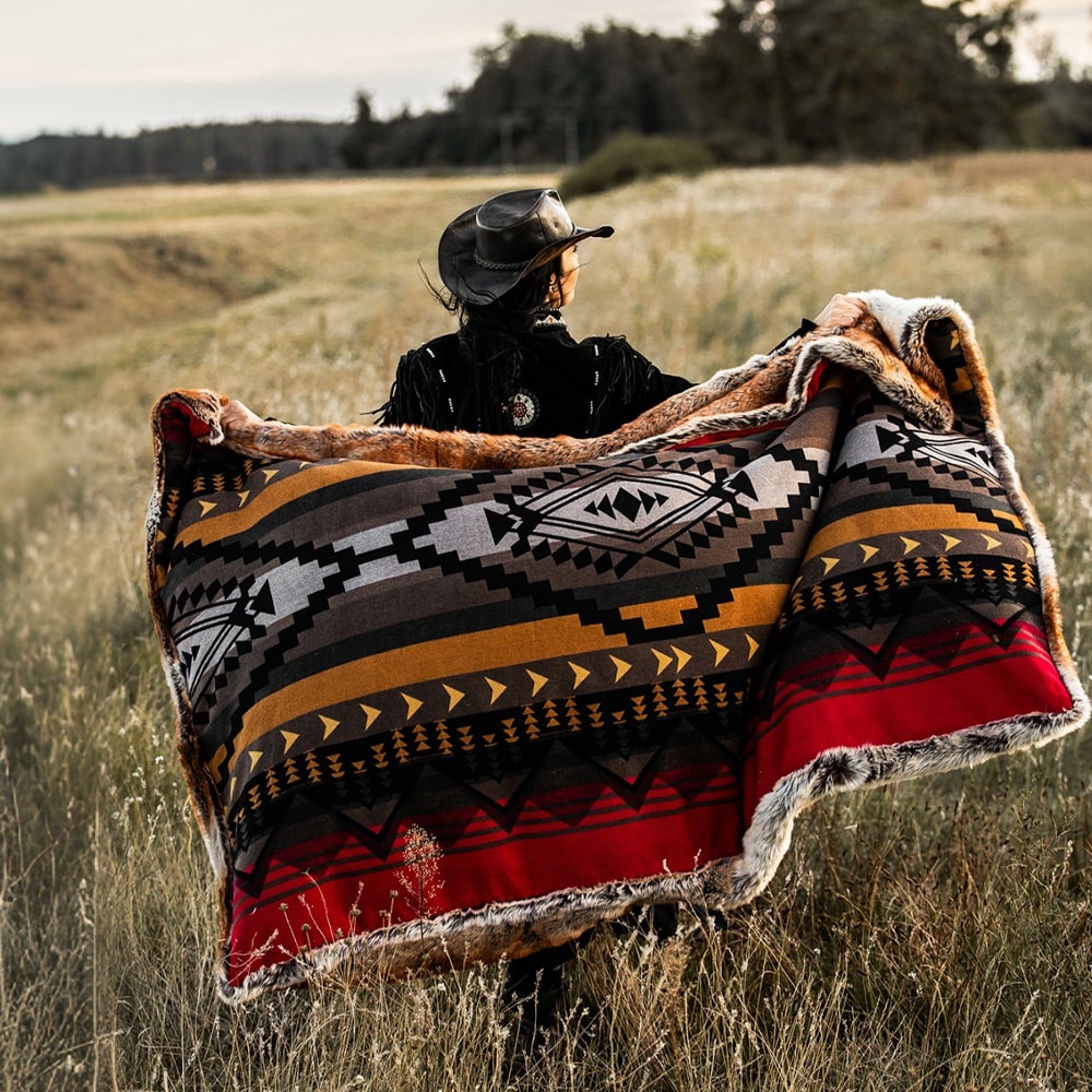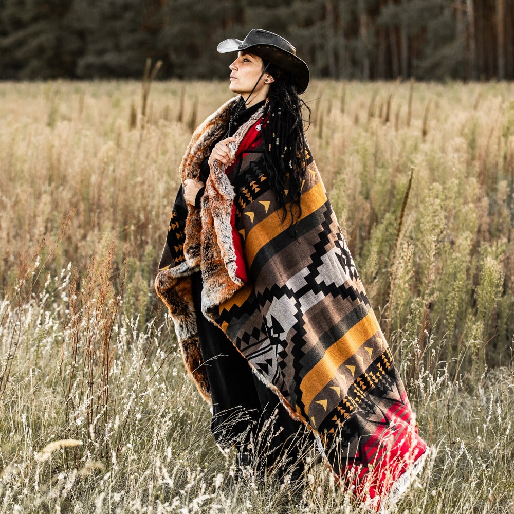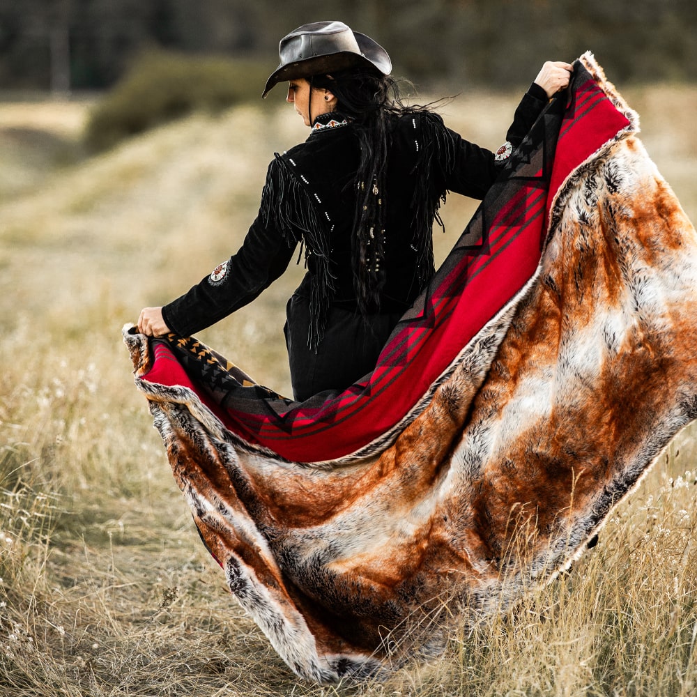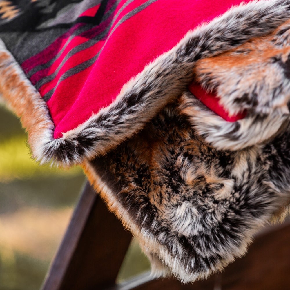 The Sierra Faux Fur Blanket features a luxurious long-pile faux fur on one side and a unique wool blended woven Sierra pattern on the other, blending warmth with style. Perfect for chilly nights by the campfire or cozy evenings on the couch with your favorite book or binge-worthy series, this blanket brings comfort and joy wherever you go. Pair it with matching faux fur pillow covers for a coordinated look, or take it on your next road trip with our blanket strap for ultimate versatility.